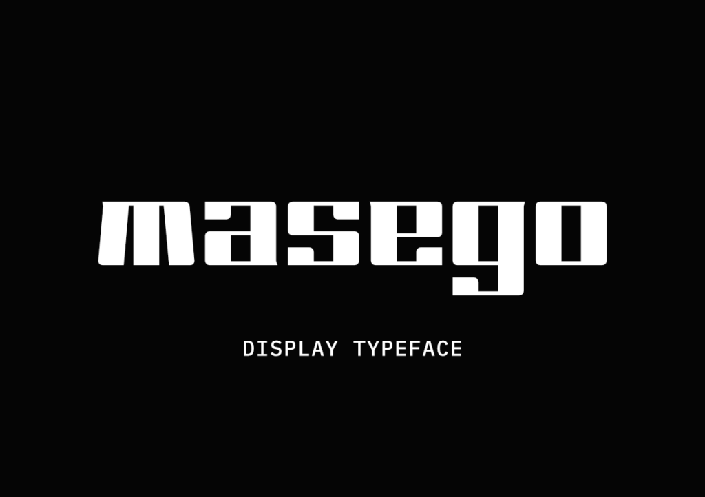 Masego is a display san-serif typeface, Masego comes in one weight and includes uppercase, lowercase, numbers + symbol & punctuation. Masego is well-suited for branding, logotypes, advertising, titles, headlines and editorial design. The typeface is free to use for personal and commercial use.